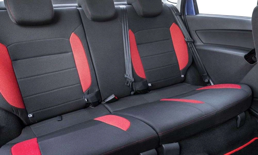 Обивка сидений ткань. Цвет черный с красными элементами